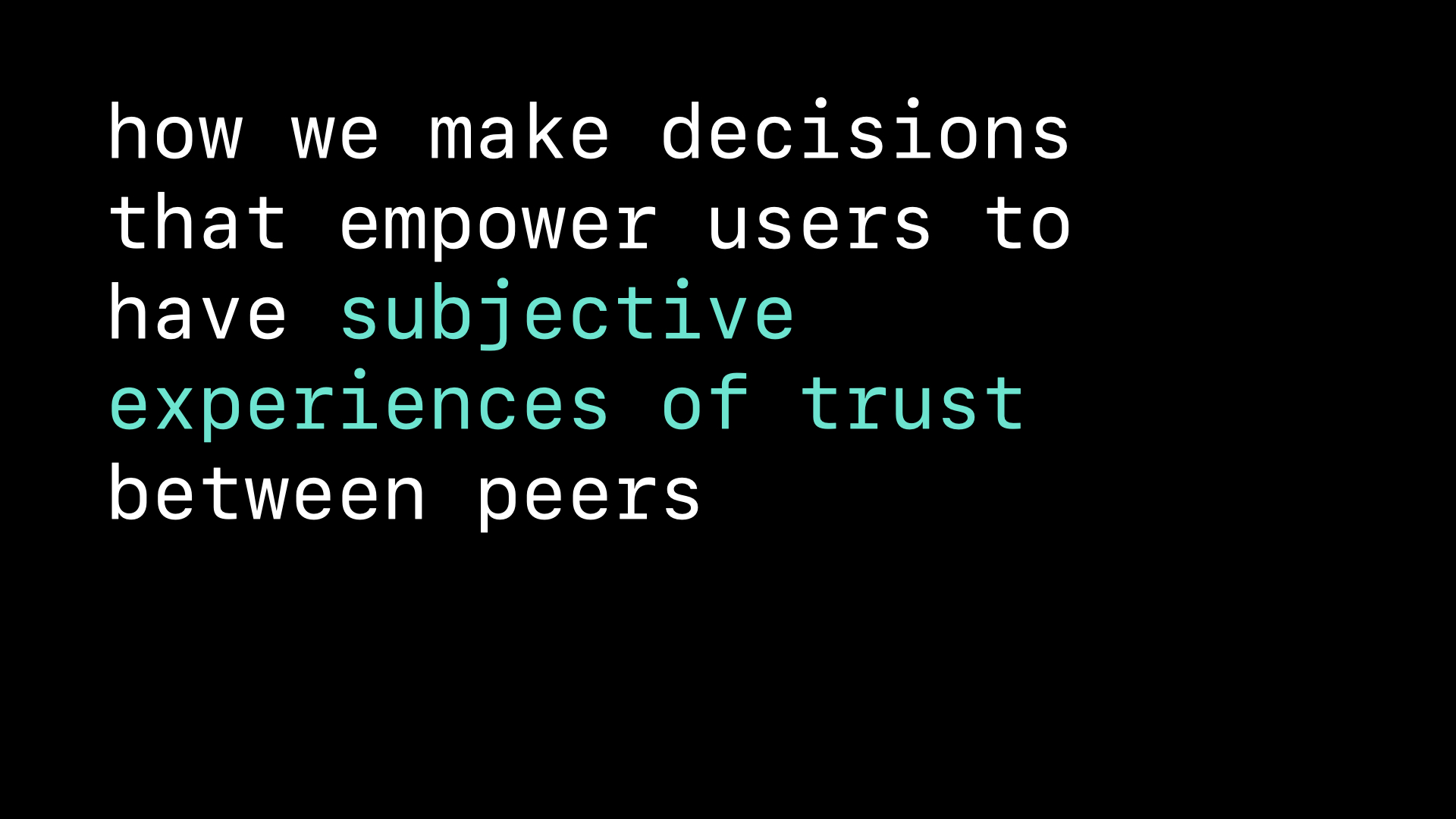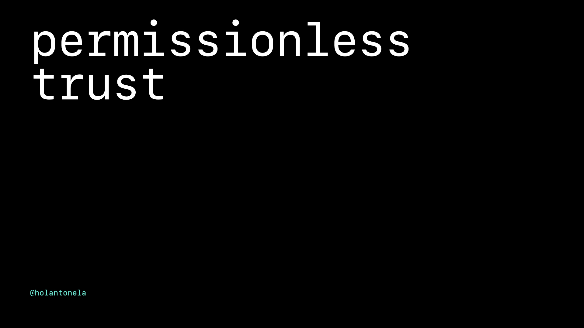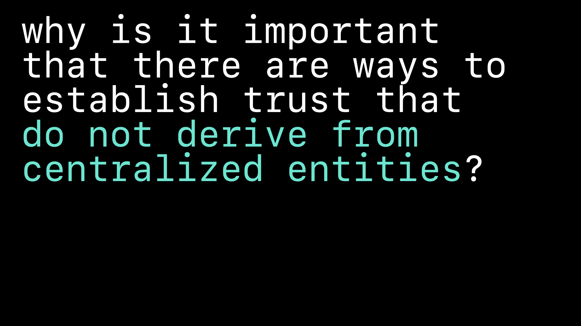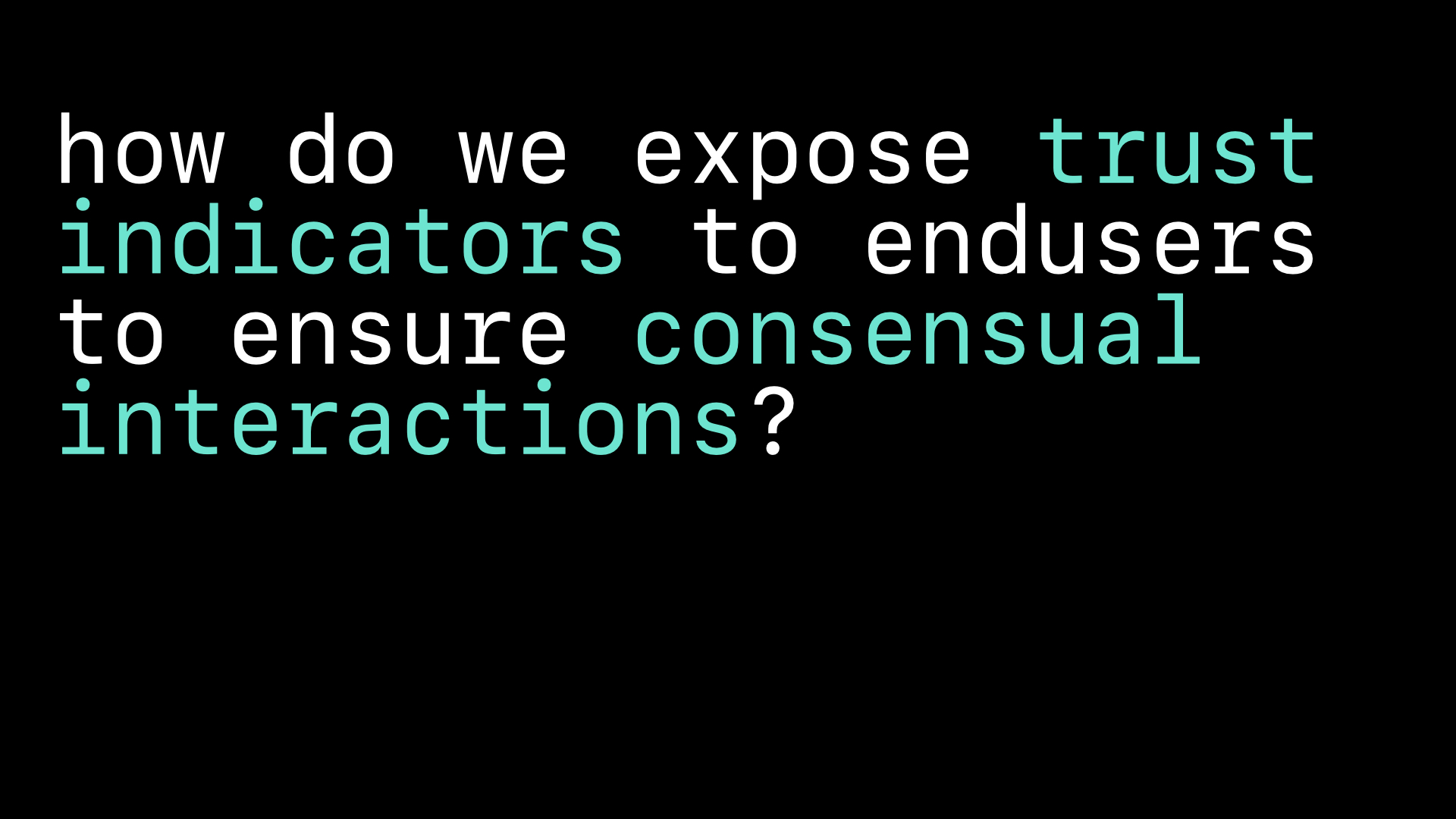 The concept of permissionless is foundational to decentralized networks, where participation in usage, development, and governance occurs without central authorization. The discussion shifts to the role of trust in these systems, considering both technological and interpersonal dimensions. I expose the need for new trust protocols that empower users to form subjective experiences of trust without external mediation, questioning whether current security indicators might disguise corporate notions of trust. As a builder, do you consider how trust can be cultivated in decentralized systems?