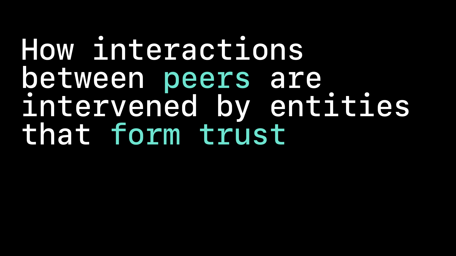 Permissionless trust delves into the complexities of trust within decentralized systems, especially in the context of blockchain networks like Ethereum. It questions the nature of trust in a world increasingly mediated by technology, asks whether machines can generate trust and how we can trust anonymous peers within decentralized networks and explores developers' challenges in creating systems that facilitate trust without relying on central authorities. It emphasizes the intricate relationship between trust, security, and peer interactions in a permissionless environment.