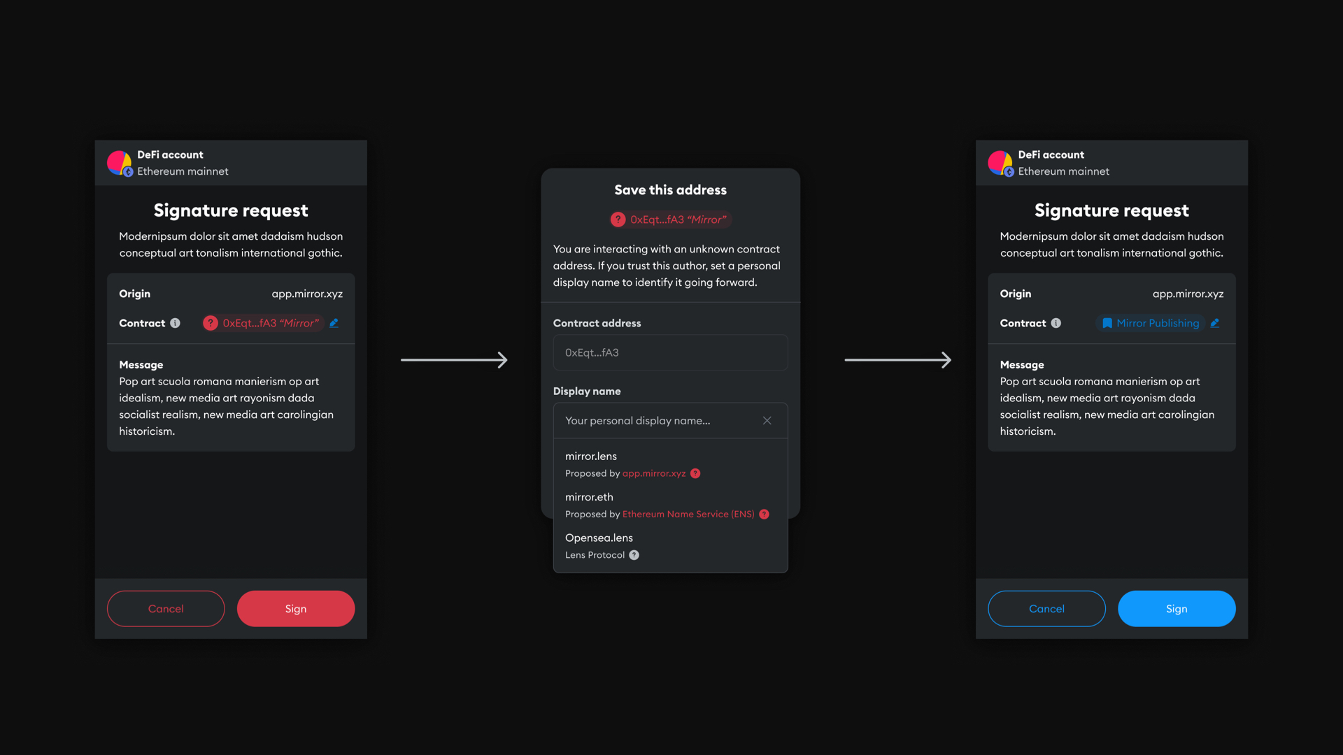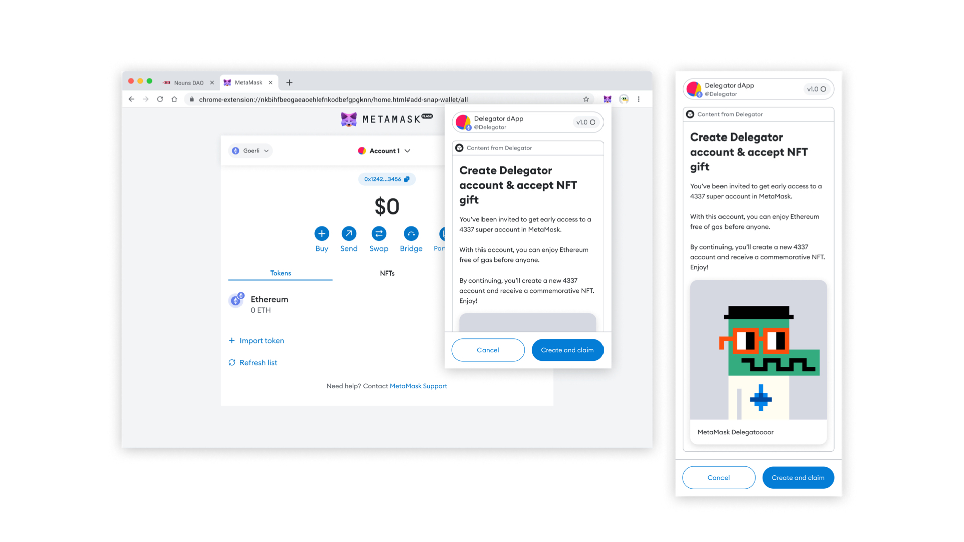 Finally, I led design for the Permissionless Innovation team. This R&D team walks and explores the edges of decentralization to encourage the most impactful developers in the ecosystem to ship their solutions to use cases through the MetaMask Snaps platform and extend end-users' consent and ownership through delegation of trust.