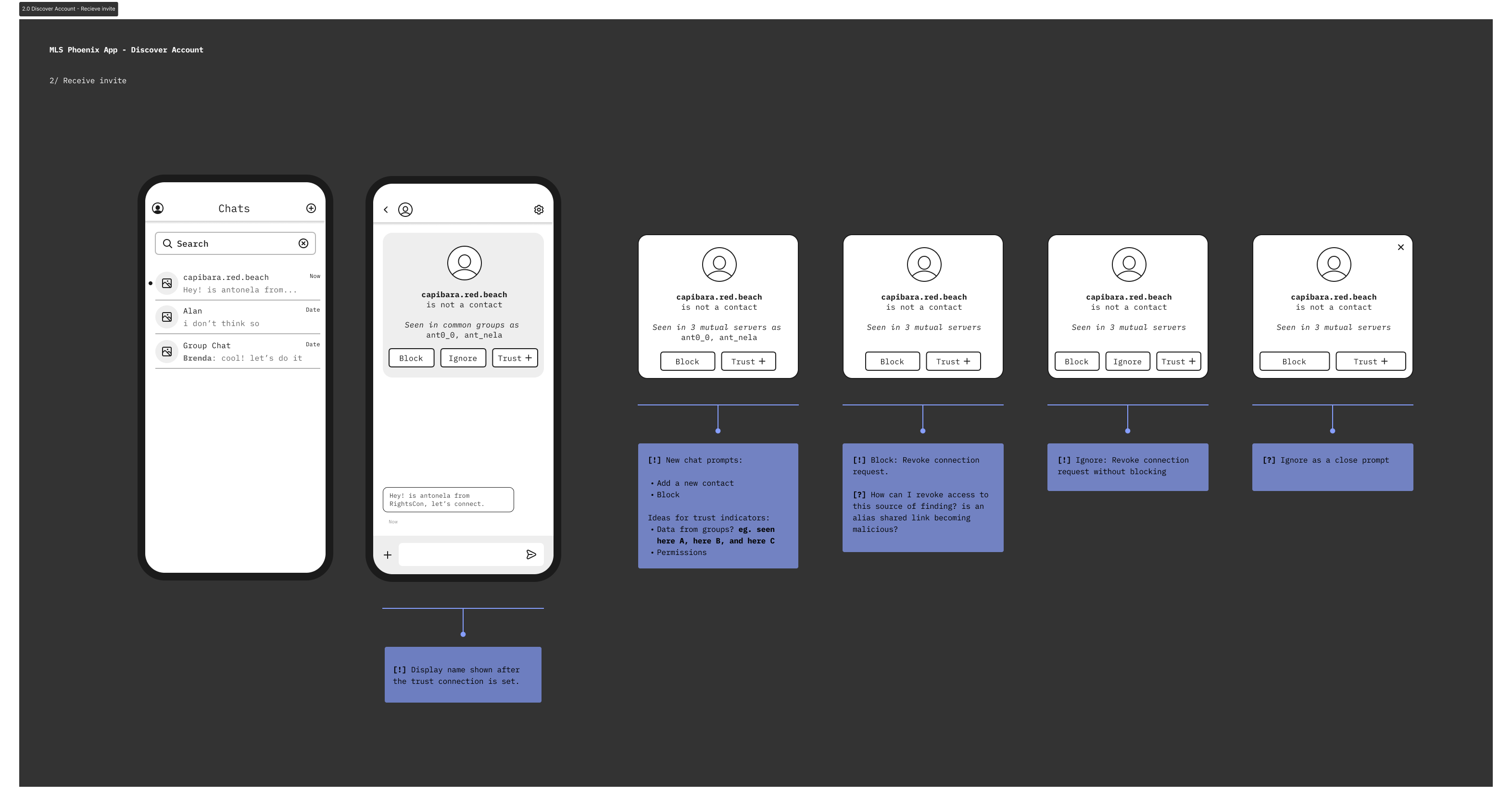 - Identity Management: Defining username, display name, and alias systems that balance privacy with usability while increasing ownership on understanding trust as an spectrum.