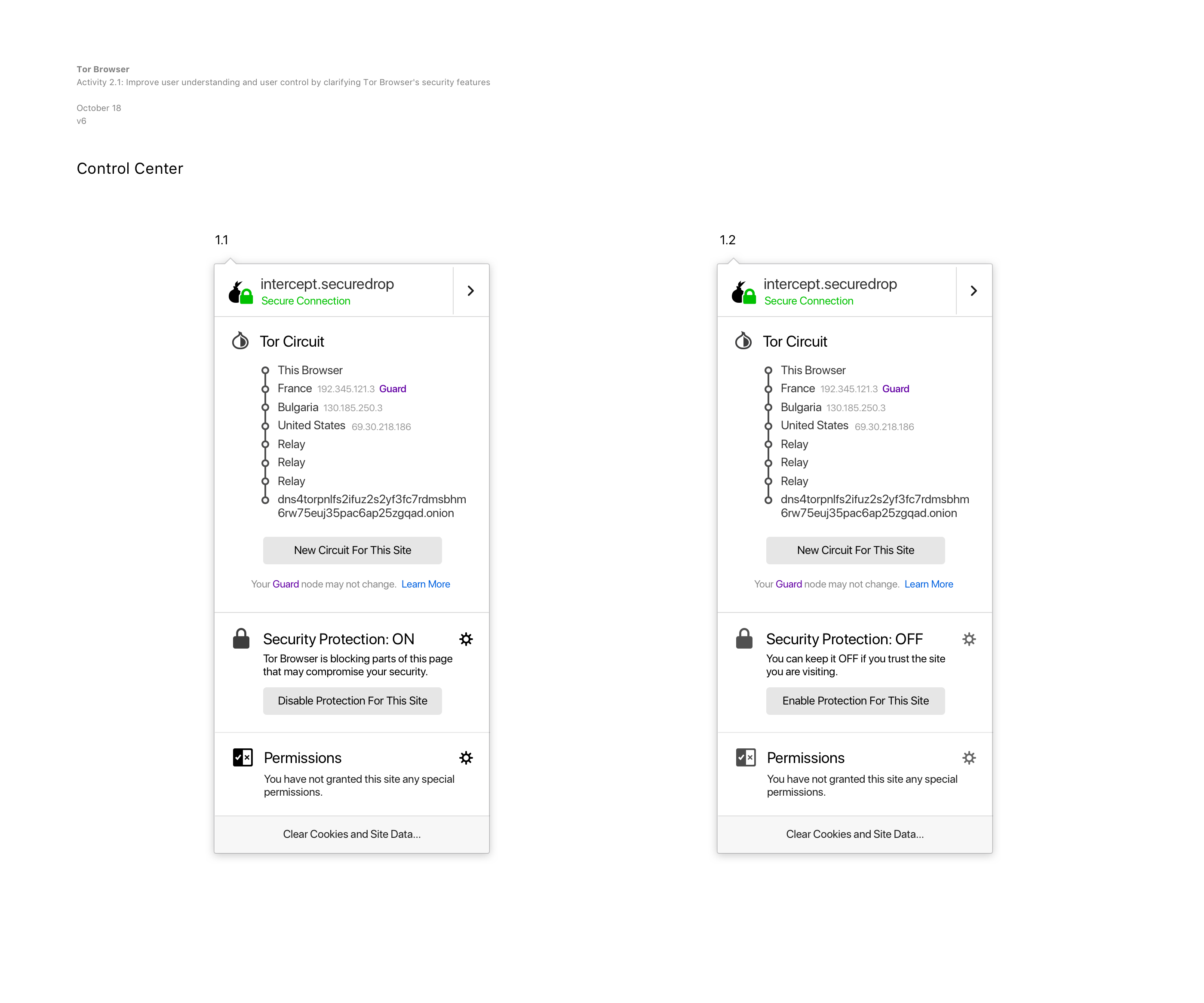 Redesign of Tor Browser’s security controls